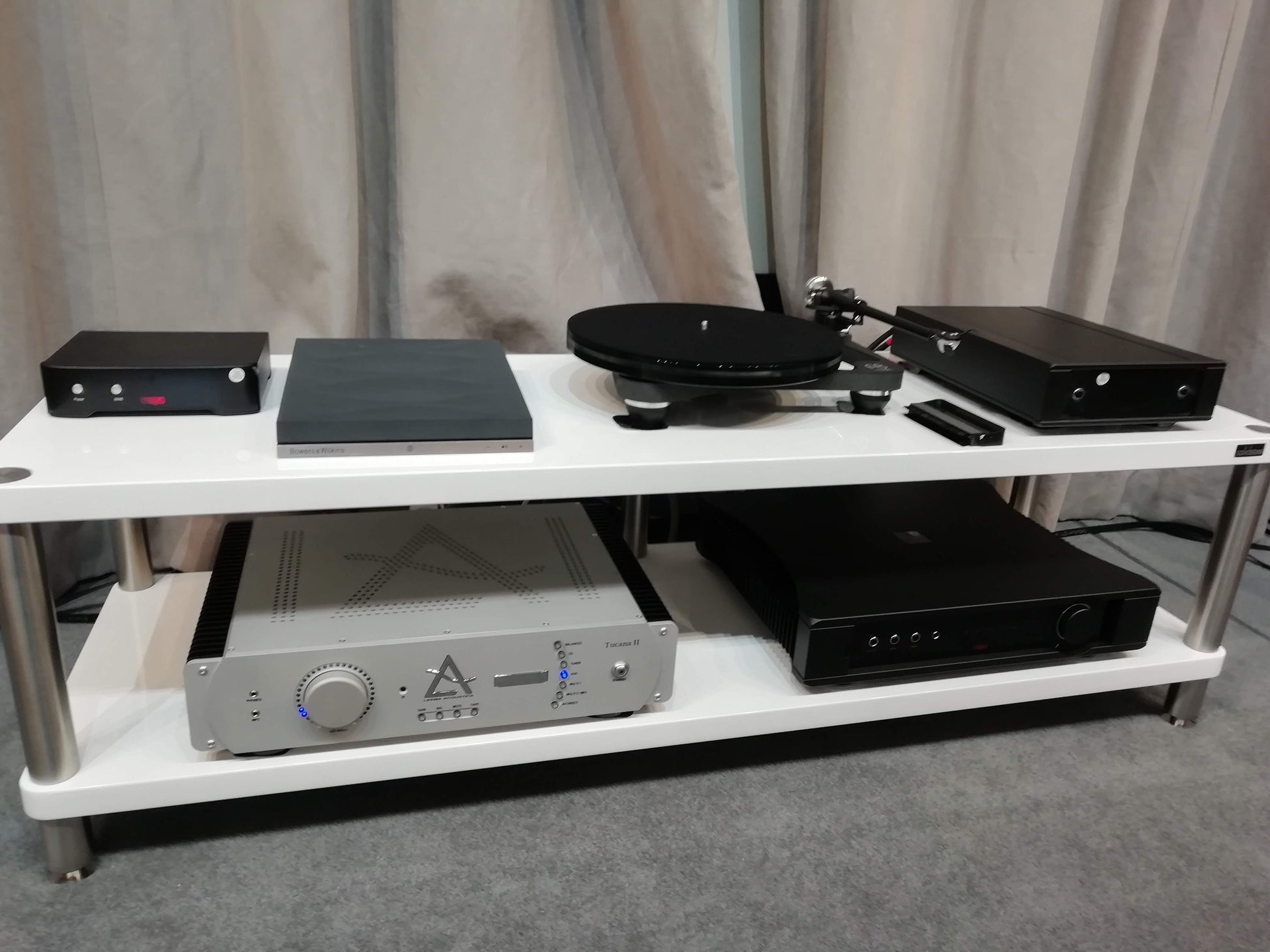 Two-tier design ideal for amplifiers, turntables, or streaming components